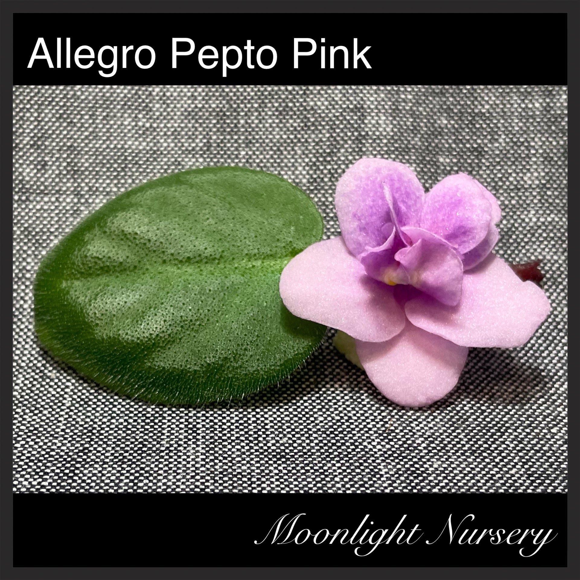 Allegro Pepto Pink (10609) 03/21/2013 (J. Stromborg) Semidouble-double medium pink pansy/darker pink overlay. Medium green, heart-shaped, glossy, serrated. Semiminiature